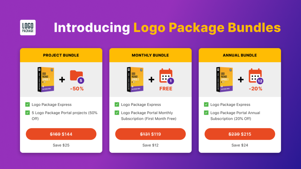 EXISTING CUSTOMERS ONLY: If you are an existing customer who is trying to upgrade and the price is not displayed as $60, please email me at michael@logopackage.com, and I will send you an upgrade link.